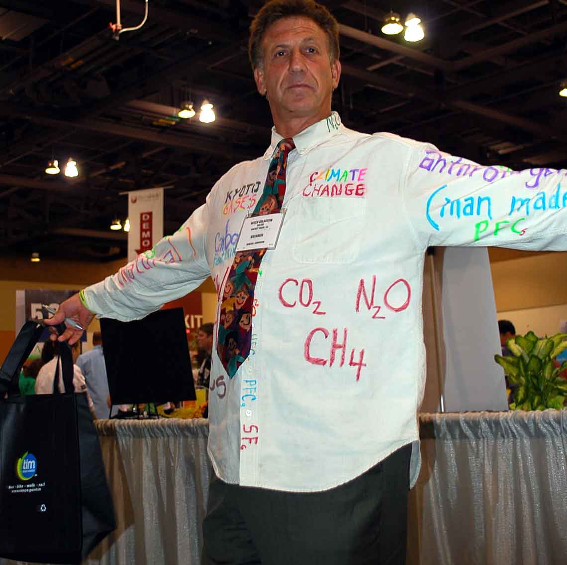 After you spend some time at a conference on sustainable practices and products, (titled ‘Green Summit’) the 5-letter word GREEN becomes wallpaper. How to break through the clutter? Here are two examples of people who go to great lengths to tell their story.