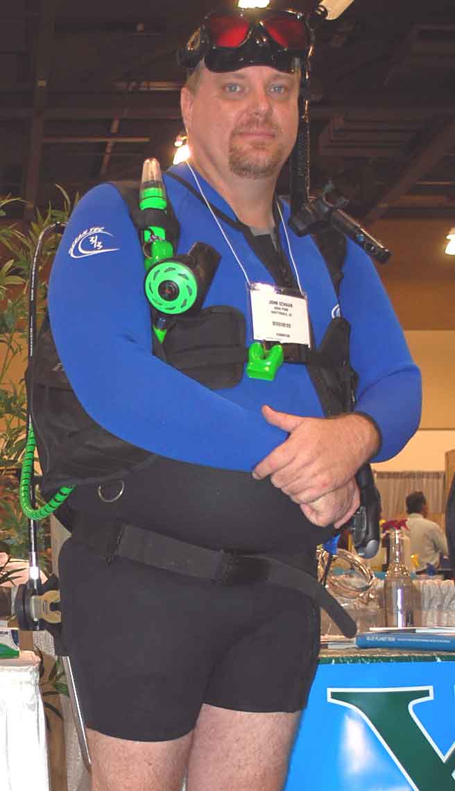I admire the man, John Schaar, dressed up in scuba-diving gear (outside temp in Phoenix: 107 degrees) to promote what is basically a filtration system that produces drinking water out of the humidity in the room. (It tasted just like any other bottled water product.) The company, Xziex International, was situated in an aisle with a slew of green products, from drinks to cleaning products that are available today. A scuba diver who gives you a great elevator pitch is hard to forget.