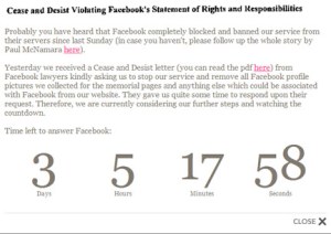 The service received a Cease and Desist letter from Facebook.So now there’s this countdown on its site. What does it claim to offer?