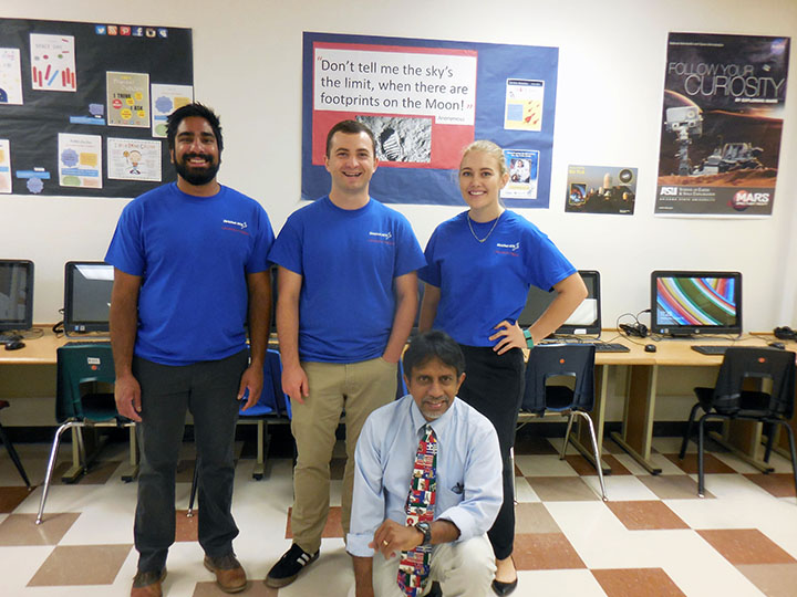 Oct 19th, last Wed, turned out to be a day filled with hands-on experiences for our students who got to hear about (and see) rockets, small-space satellites, robots that could some day work in ‘teams’ or swarms on a distant planet, how to design a landing craft and parachute like the Phoenix Mars Lander, and of course sit inside a portable, inflatable planetarium