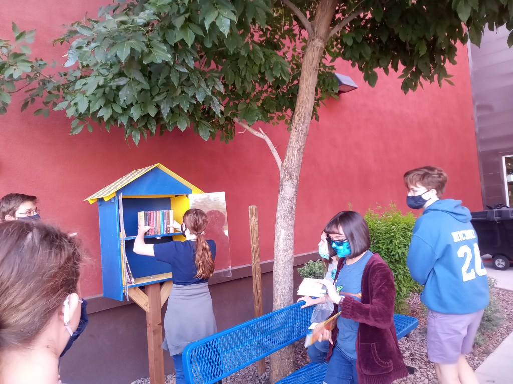 After we installed our first Little Free Library unit in 2019 I sensed a slight uptick in reading. Though my classroom is a computer lab, we discuss literature; reading is a given. Books have not been replaced by technology. My shelves are stacked with copies of WIRED, and The New Yorker. (One book on my shelf, “Eats, Shoots and Leaves“ helps start a discussion on good grammar and punctuation. Then there’s no escaping Orwell’s ‘1984‘ when discussing privacy or surveillance. But I digress.)